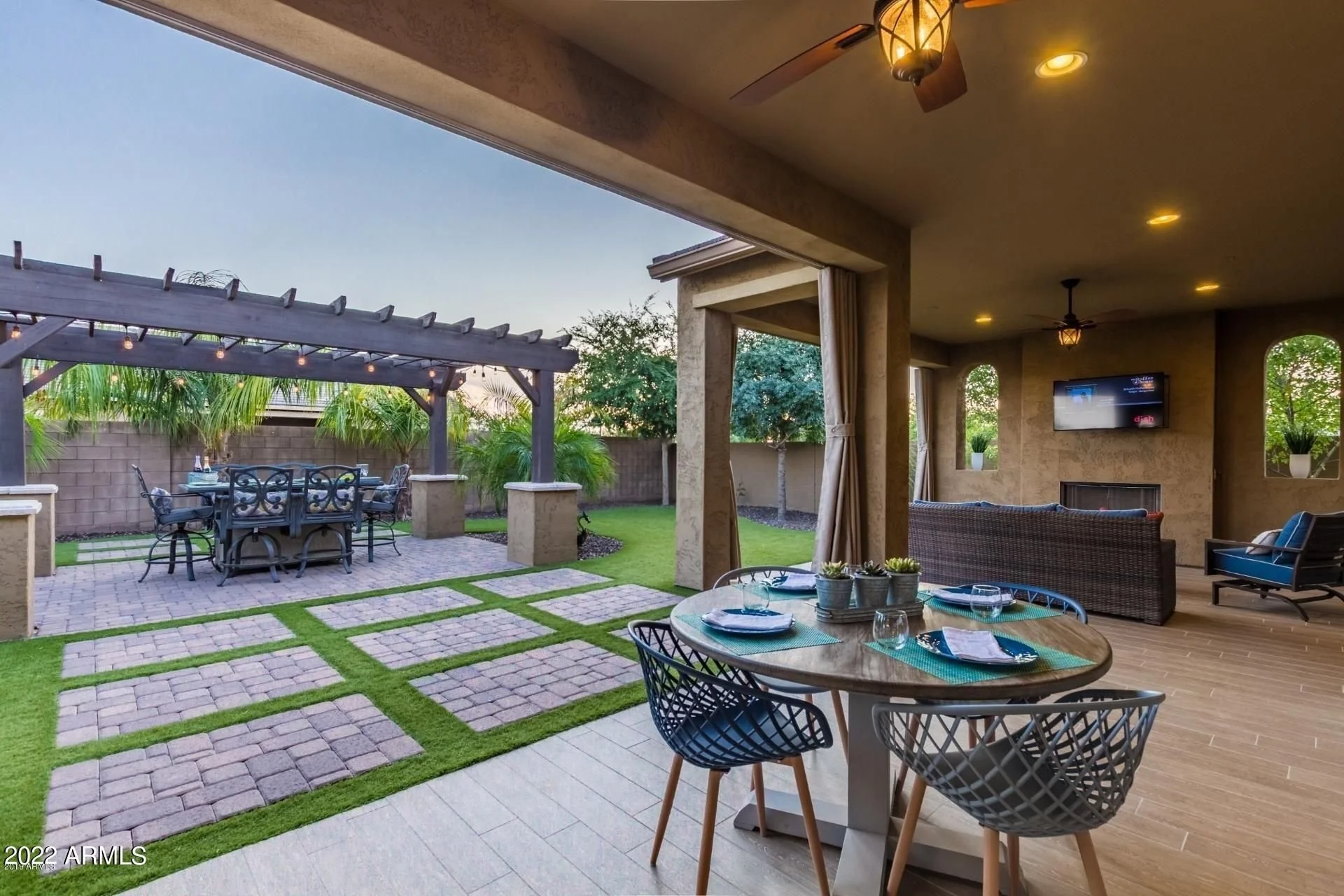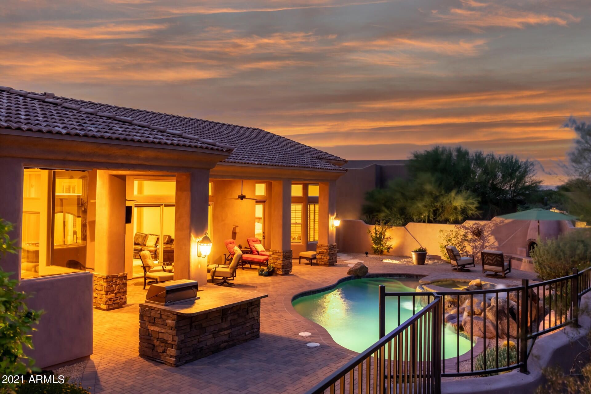 The backyard offers a private oasis with a full-length covered patio, a built-in grill, a blue pool, and outstanding views of the golf course & mountains. What more can you ask for? The comfortable & active lifestyle that you're looking for is here!